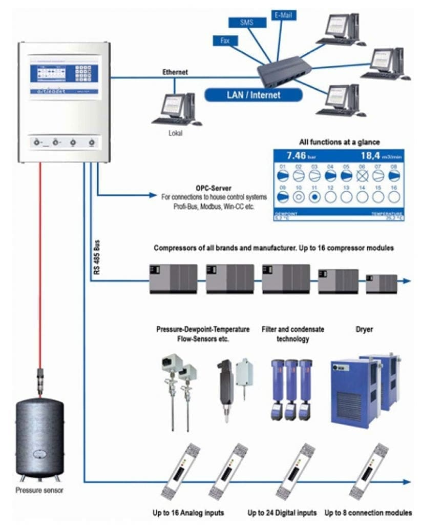 The numbers on controllers are good. $12-25k installed on a three-to-five compressor system. The controller replaces cascade pressure band sequencing, where each compressor trips on at a different pressure setpoint, with algorithmic optimization. Cascade at partial demand means multiple compressors cycling between loaded and unloaded simultaneously. An unloaded load/unload compressor draws about a third of full-load power while making no air. A controller eliminates the overlap. Runs minimum machines at maximum loading, parks everything else.